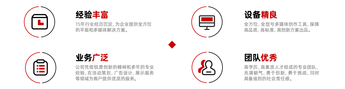 憑借銳意創(chuàng)新的精神和多年的專業(yè)經(jīng)驗,在活動策劃、廣告設計、展示服務等領域為客戶提供優(yōu)質的服務。